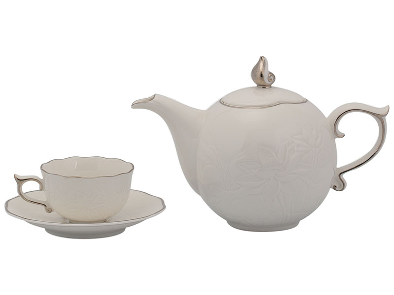Bộ trà 0.7 L – Sen IFP – Chỉ Bạch Kim – gốm sứ cao cấp