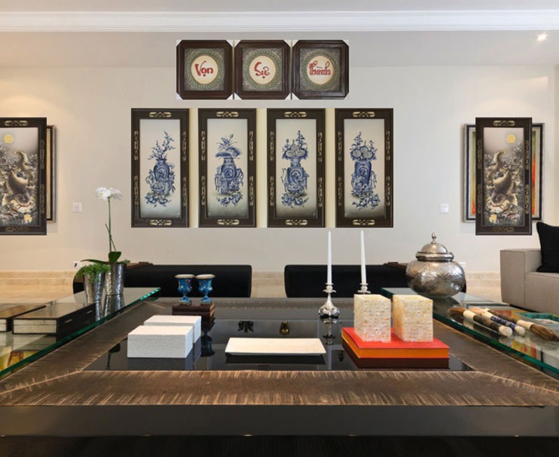 Chúng ta có thể treo bộ tranh sứ từ trái sang phải theo lối hiện đại hoặc từ phải sang trái theo lối cổ điển. Tranh sứ cũng được giới chơi tranh dùng làm vật trang trí phòng khách.