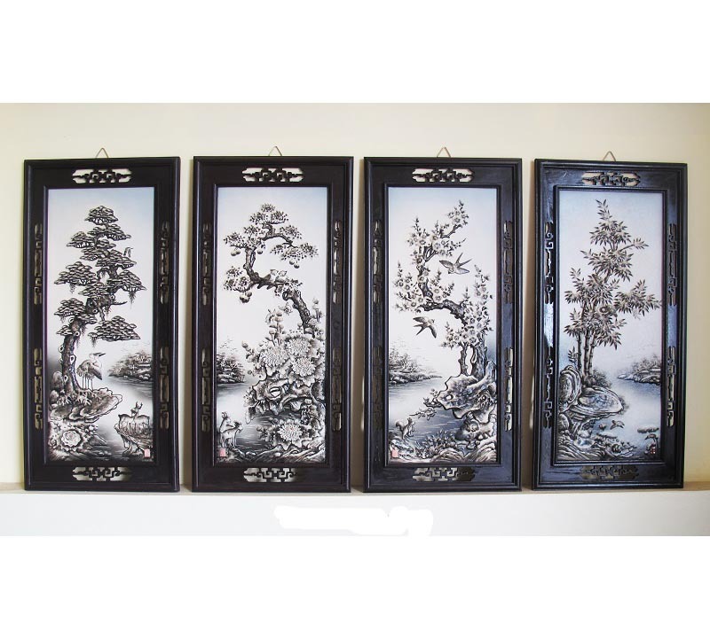Tranh sứ Tứ Quý Tùng – Cúc – Trúc – Mai Số 3